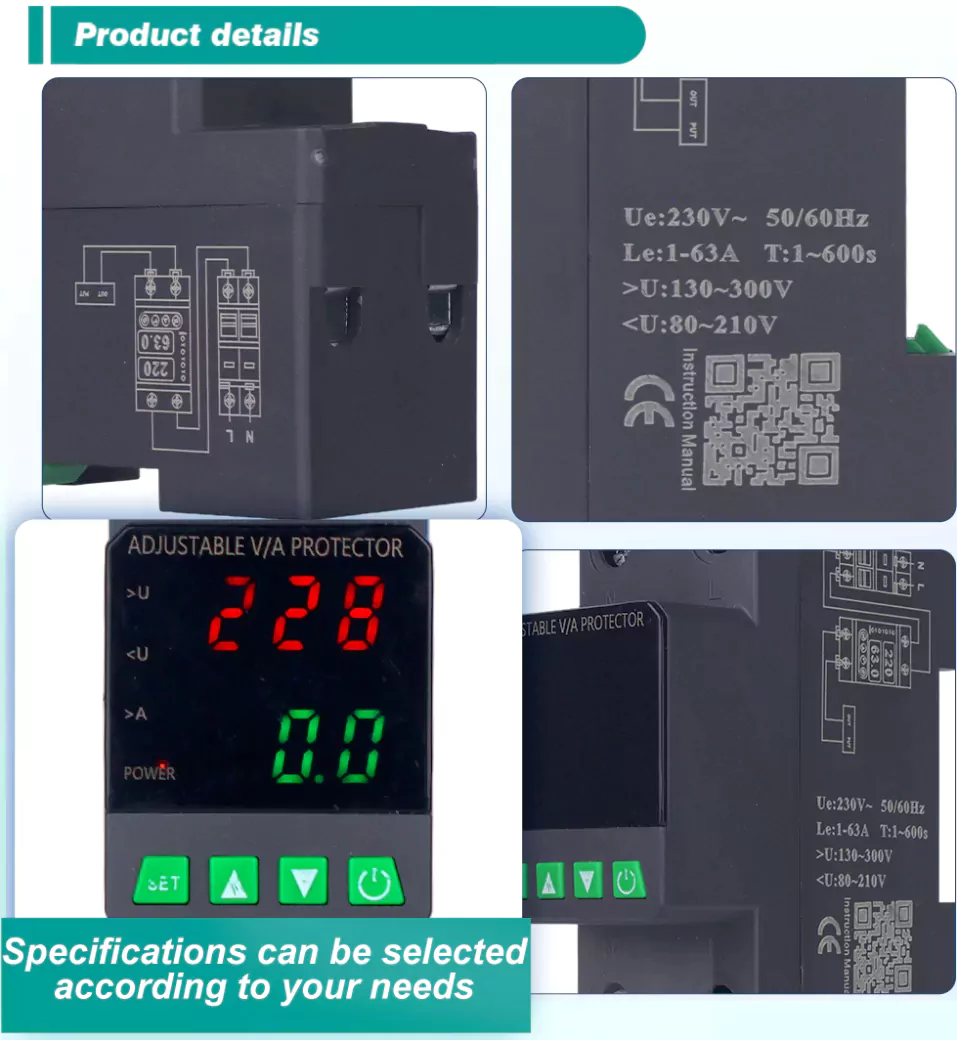 Dilengkapi tampilan digital lan diprodhuksi kanthi komponen elektronik modular sing diimpor, nduweni keandalan lan kinerja sing dhuwur. Pelindung kanthi otomatis lan cepet ngilangi pasokan tenaga sajrone voltase sing ora normal (kayata overvoltage, undervoltage, furvoltage, fruitage, utawa mbalekaken pasokan tenaga sawise voltase bali normal.