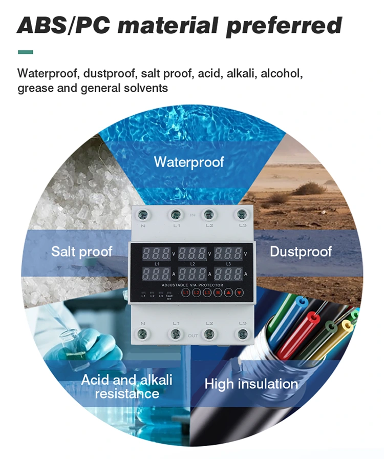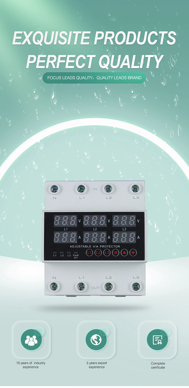 Dheweke teka karo tampilan digital lan digawe nggunakake komponen elektronik modular sing diimpor, saéngga nawakake linuwih lan kinerja sing dhuwur. Ing kasus volapan sing ora normal kaya overvoltage, undervoltage, utawa grid, protektor kanthi otomatis lan cepet ngilangi kekuwatan, banjur mulihake yen voltase bali normal.