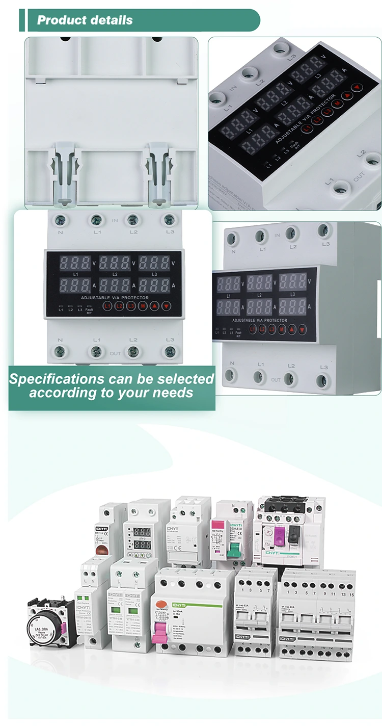 Chvp 4 Pole Telung Relay Protektor Protektor Voltage minangka piranti ngawasi voltase adhedhasar mikrocorsesor kanggo jaringan AC siji-fase kanggo nglindhungi peralatan listrik saka voltase mundhak. Piranti nganalisa voltase utama lan nampilake nilai saiki ing indikator digital. Muja diuripake karo relay elektromagnetik. Pangguna bisa nyetel nilai voltase saiki lan wektu tundha liwat tombol kasebut. Nilai kasebut disimpen ing memori sing ora molah malih. Kabel aluminium lan kabel tembaga bisa digunakake kanggo sambungan.