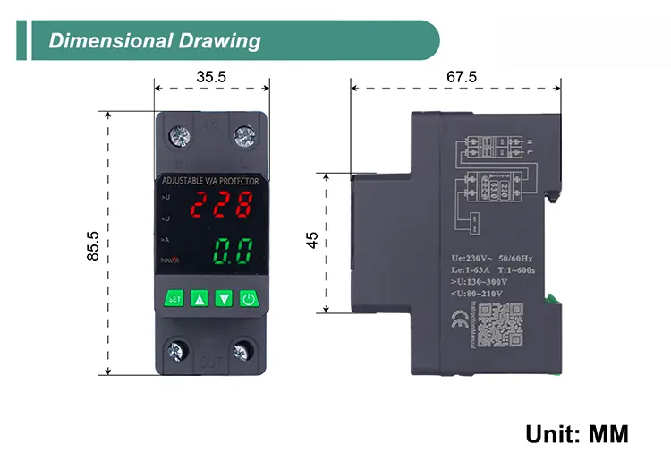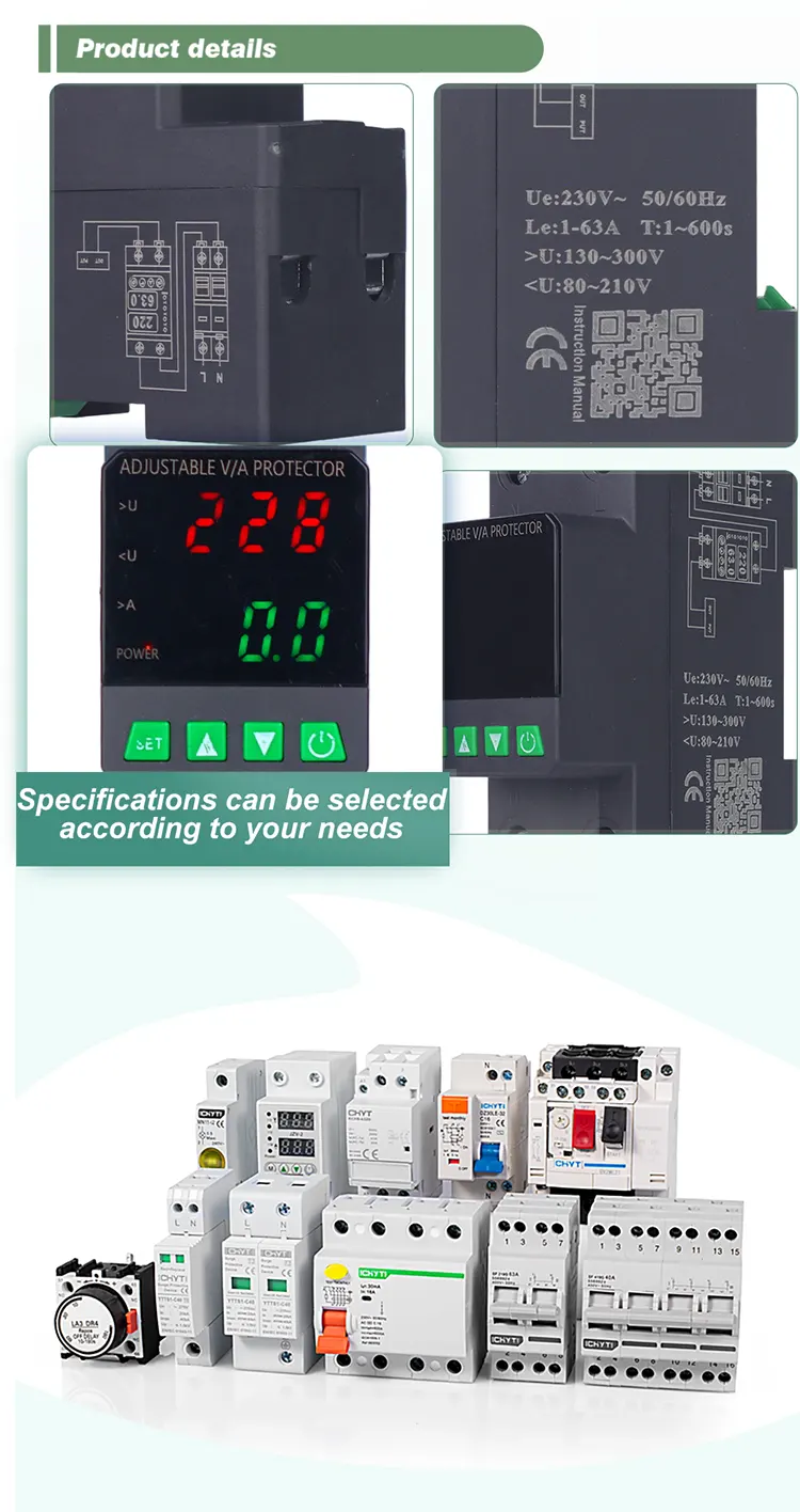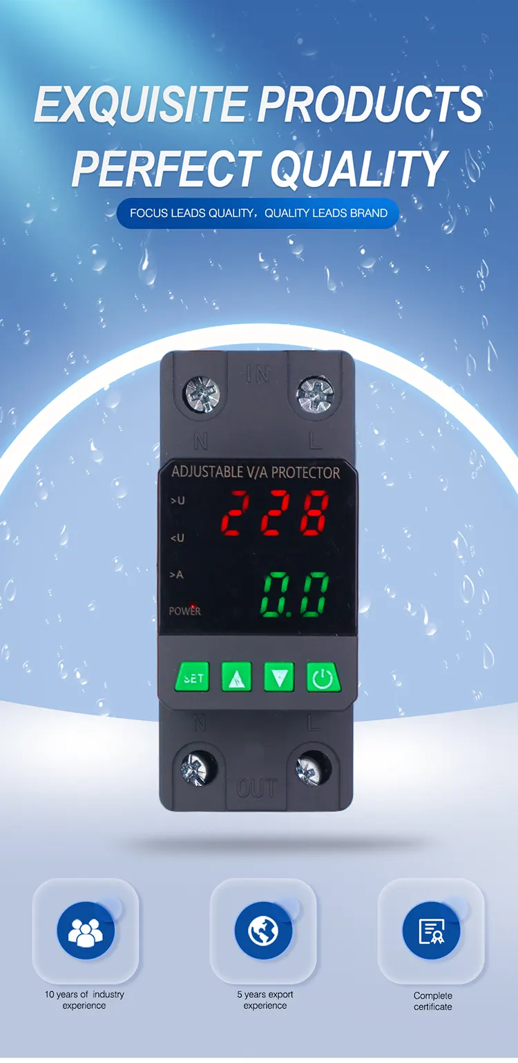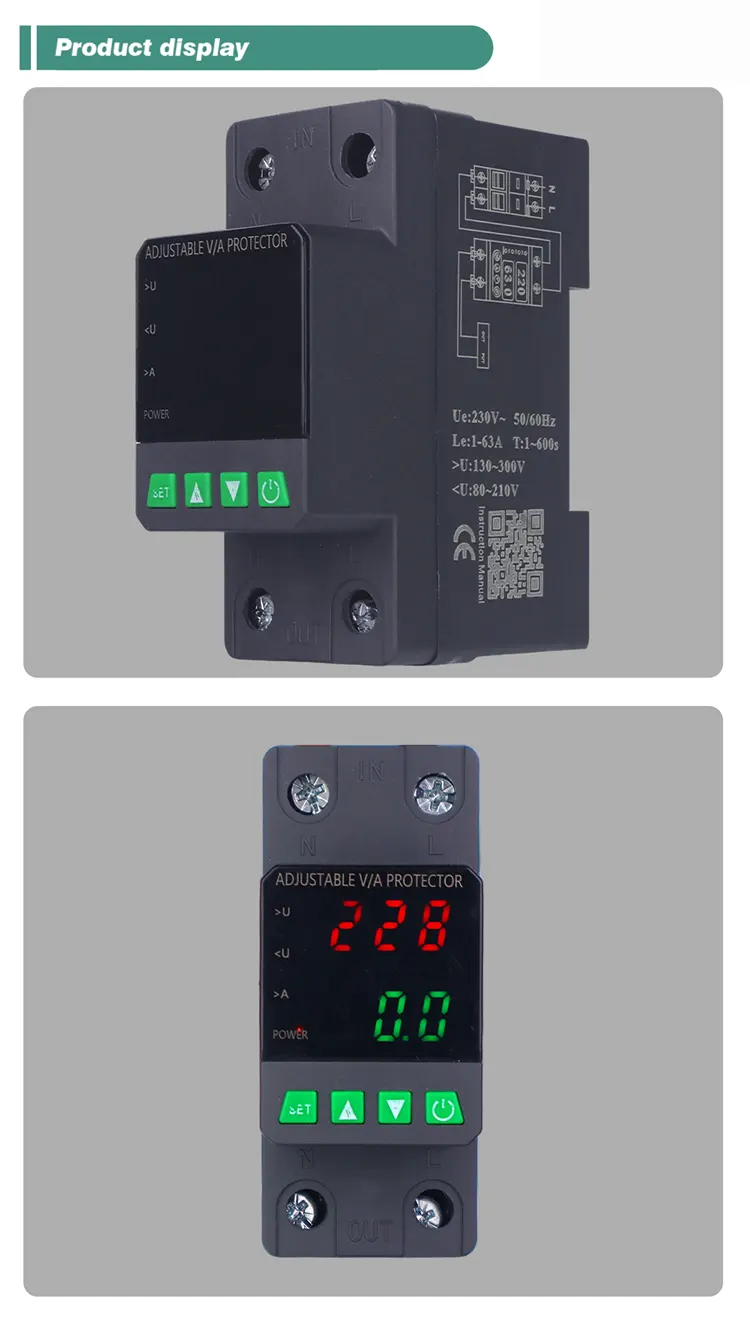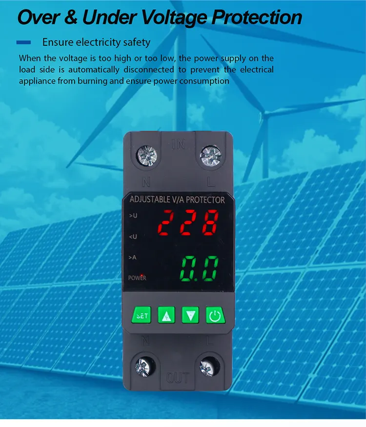 Dilengkapi tampilan digital lan diprodhuksi kanthi komponen elektronik modular sing diimpor, nduweni keandalan lan kinerja sing dhuwur. Pelindung kanthi otomatis lan cepet ngilangi pasokan tenaga sajrone voltase sing ora normal (kayata overvoltage, undervoltage, furvoltage, fruitage, utawa mbalekaken pasokan tenaga sawise voltase bali normal.