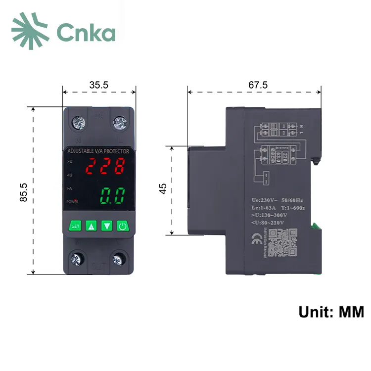 Cnka minangka supplier Cina sing kondhang sing nyedhiyakake grosir proteksi voltase dual merek. Piranti kasebut dirancang khusus kanggo fase siji-fase, 50Hz sirkuit kanthi arus sing dirating saka 63A, nggawe dheweke dadi pilihan sing cocog kanggo nglindhungi kothak distribusi kanggo peralatan siji-fase.